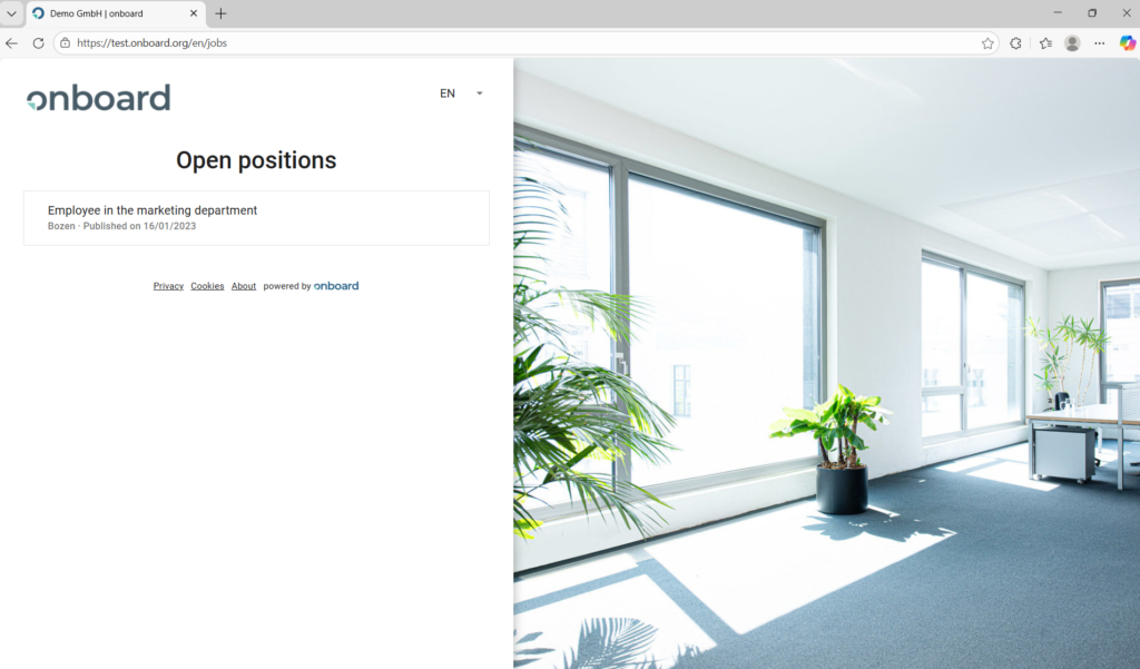If you do not maintain your own career page on your website, you can simply link to the onboard career page.