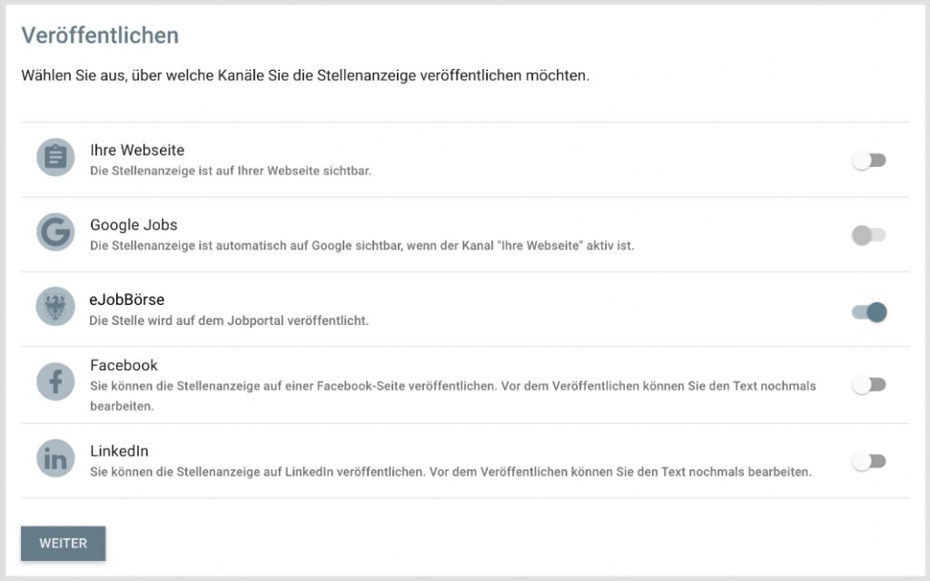 Die Schnittstelle ermöglicht die Veröffentlichung von Stellenanzeigen auf:
