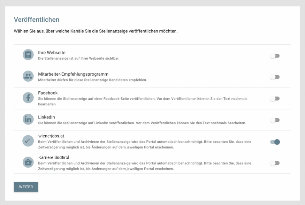 Die Schnittstelle zu Wiener Jobs ermöglicht die Veröffentlichung von Stellenanzeigen auf wienerjobs.at