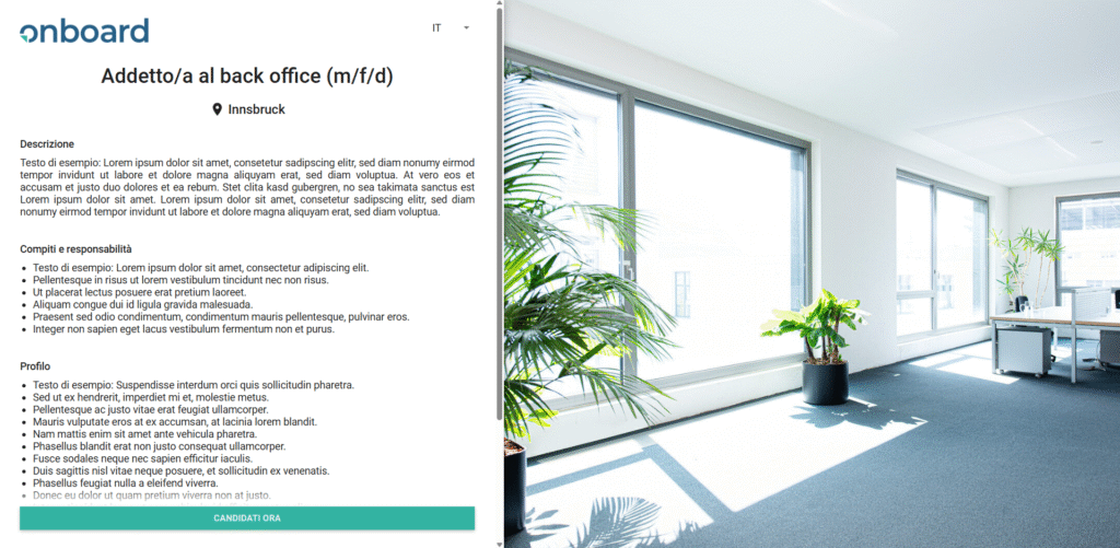 Inoltre, in onboard è possibile caricare immagini personalizzate che fanno parte del layout degli annunci di lavoro.