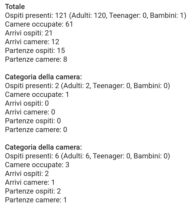 - Ospiti presenti al giorno, suddivisi per tipologia